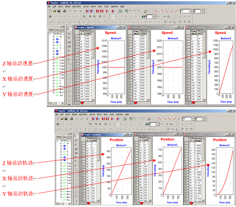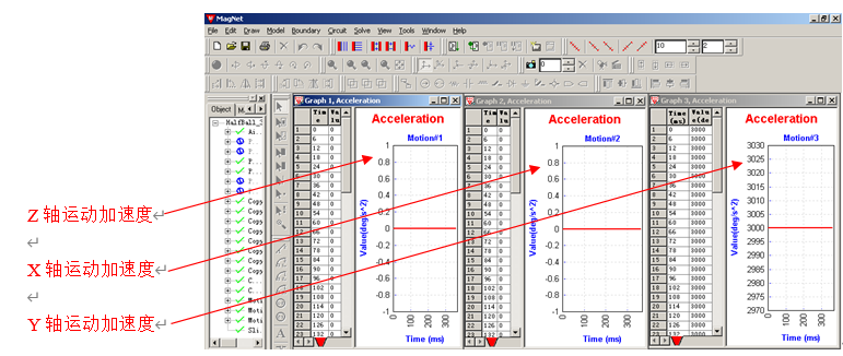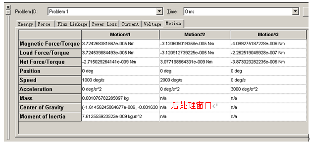 MagNet的后处理工具很方便得到各种数据,比如关于运动的特性,运动速度、轨迹、加速度等。